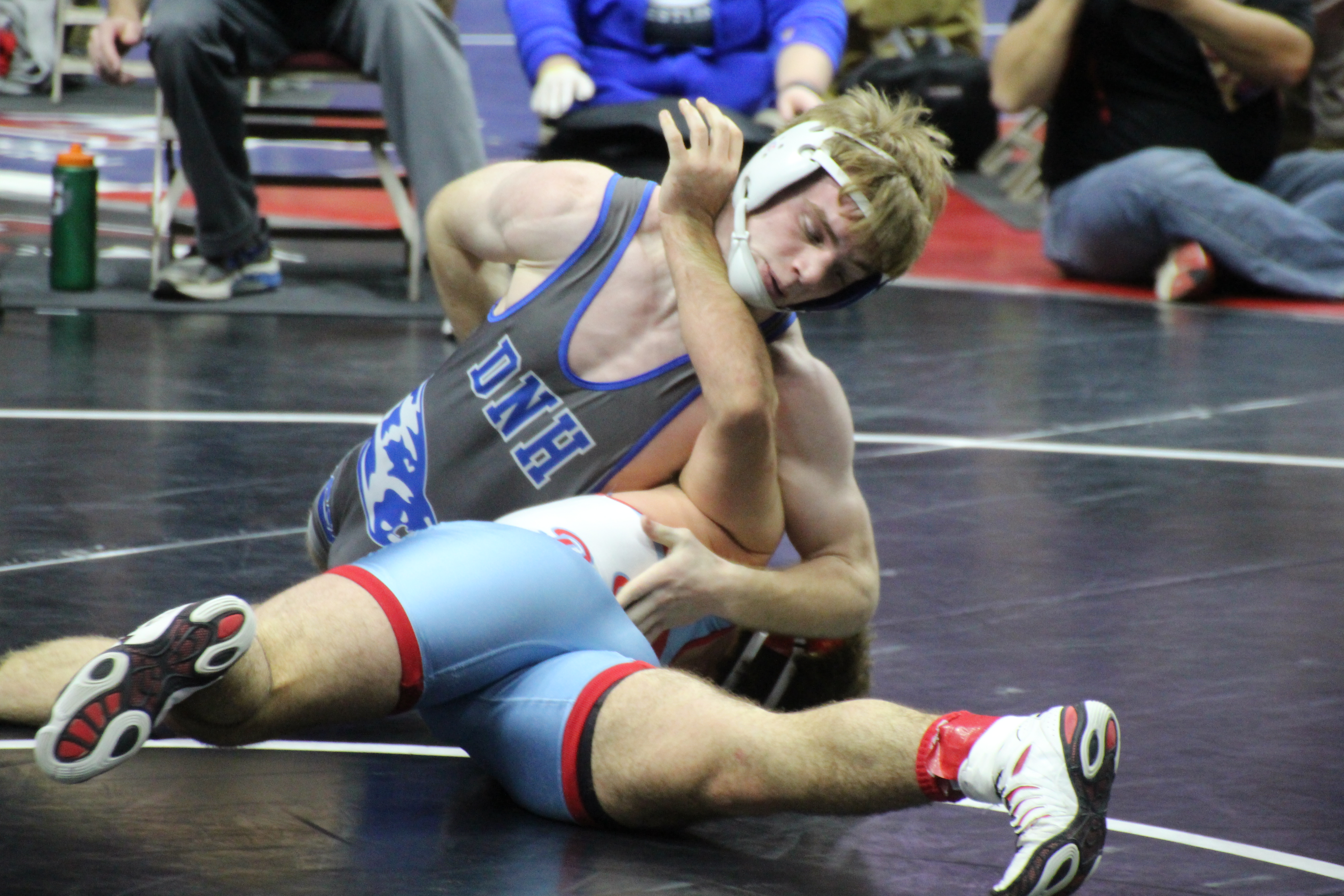D-NH heavyweight Chase Arends won his first consolation match against Akron-Westfield's Montana Jackson by fall but was pinned by Pleasantville's Will Anthony to bump Arends to the 7th-place match with WACO's Cody Crawford. Crawford and Arends will battle Saturday morning.