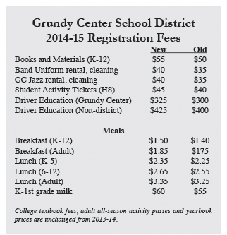 GRUNDY CENTER — Fees for books, meals and other registration-related fees will be climbing in the Grundy Center Community School District next year.